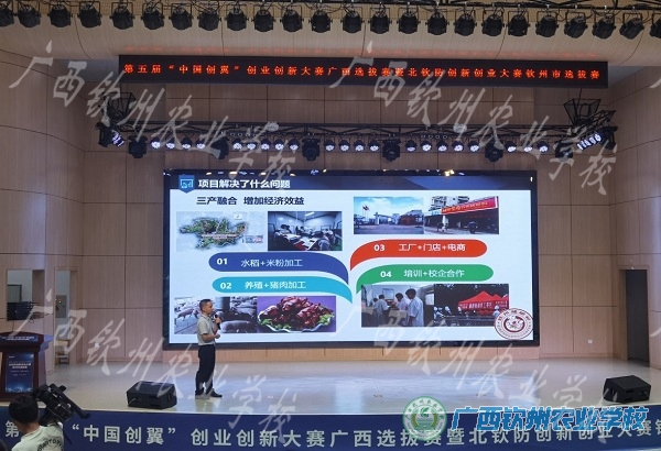2022年6月8日,由现代农业学部农产品贮藏与加工、中餐烹饪两专业7名教师组成的钦州猪脚粉工厂式标准化加工及包装技术推广的项目团队,突破教学上的束缚,深度挖掘专业的创业创新亮点。在第五届“中国创翼”创业创新大赛广西选拔赛暨北钦防创新创业大赛钦州赛区决赛中,荣获主体赛第四名,“三等奖”的好成绩。