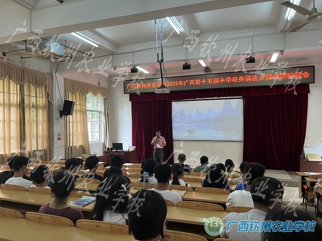 动员会上,郑修营主任详细解读了我校2022年广西第十五届中华经典诵读大赛暨2022广西校园中华经典诵读大赛参赛工作方案,希望学生们积极参与,语文老师们高度重视,增强荣誉感,严格要求,刻苦训练,争取好的成绩,为校争光。