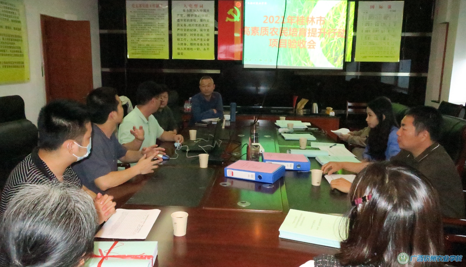 2022年5月25日下午,桂林市2021年高素质农民培育提升行动第一期项目验收会议在桂林市农业农村科教站会议室召开。由桂林市农业农村局相关部门成员组成验收小组对我校承担的2021年桂林市高素质农民培育提升行动第一期项目培训任务进行专项验收。我校李运光副校长一行4人参加了会议。