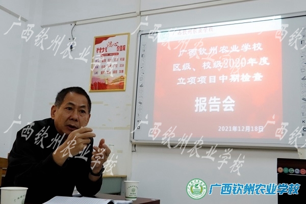 12月18日上午,我校教育教研中心在第三教学楼104室组织召开了广西钦州农业学校区级、校级2020年度教育教学立项项目中期检查会议,此次会议由教育教研中心彭秀主任主持,陈明强副校长亲临现场指导,何祖猛、郑修营、胡礼荣、黄月秀、茅海琼5位校内评议专家、各项目负责人、参与人参加了本次会议。