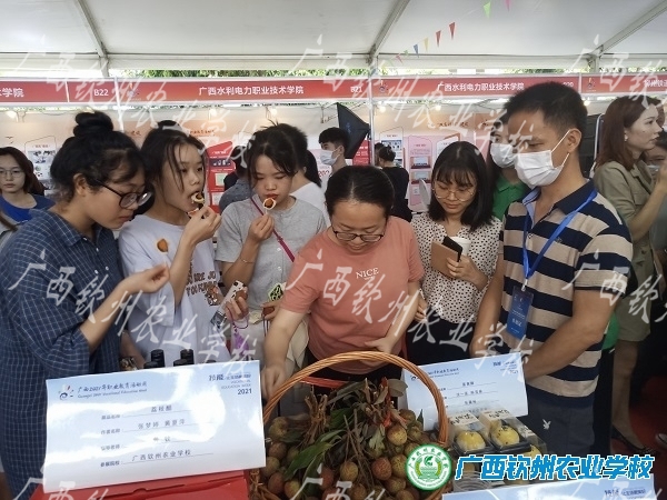我校作为此次参展的84所院校之一,现场展示了农产品贮藏与加工专业的多项实物成果,如牛大力速溶茶、牛大力饮片、蛋黄酥、荔枝醋、咸海鸭蛋、各种面包等,并为参展嘉宾提供品尝体验活动,吸引了众多同行及社会各界人士驻足关注,纷纷在展位前排队等待品鉴、咨询,对我校的办学成果给予了较高的评价。