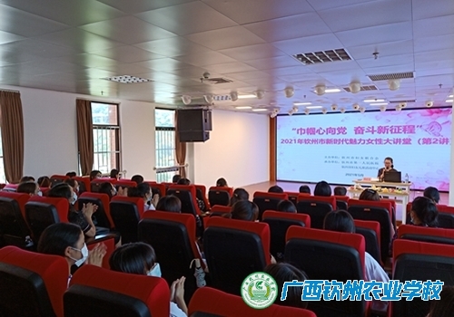 5月25日下午,我校妇委会组织30名女职工和女同学到钦州市妇女儿童活动中心参加2021年钦州市新时代魅力女性大讲堂第2讲活动。
