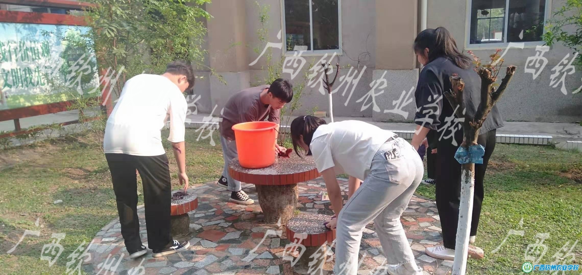 青年志愿者开展美化校园环境活动
