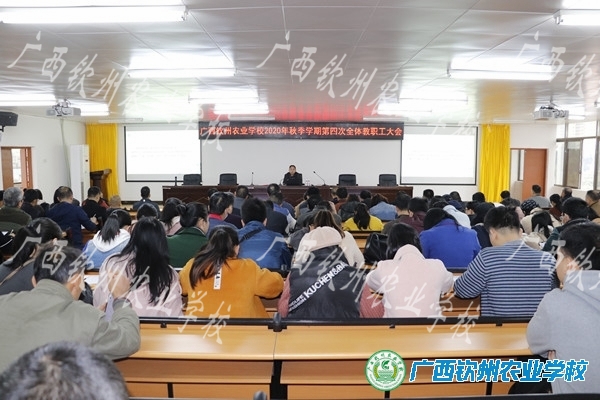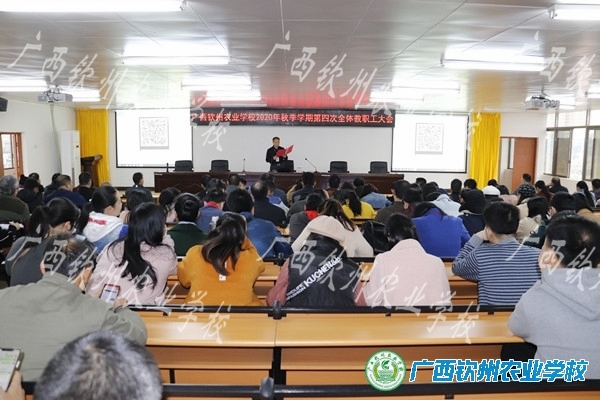 陈明强副校长对学期主要工作进行了通报,详细解读了《广西钦州农业学校2021年选拔任用部分中层干部实施方案》、《广西钦州农业学校工会换届选举工作方案》以及《广西钦州农业学校2020年度考核方案》,布置和落实了学期期末工作,强调了元旦春节期间新冠肺炎疫情防控要求。