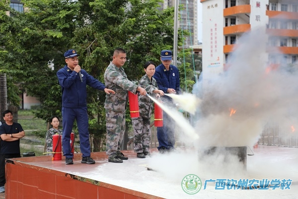 演练活动由副校长邓业斌主持。钦州市钦南区消防救援大队指导员罗政宾、站长吴华良,我校党委书记伍国樑,党委副书记、校长梁文宇等领导出席并观摩指导了整场演练。