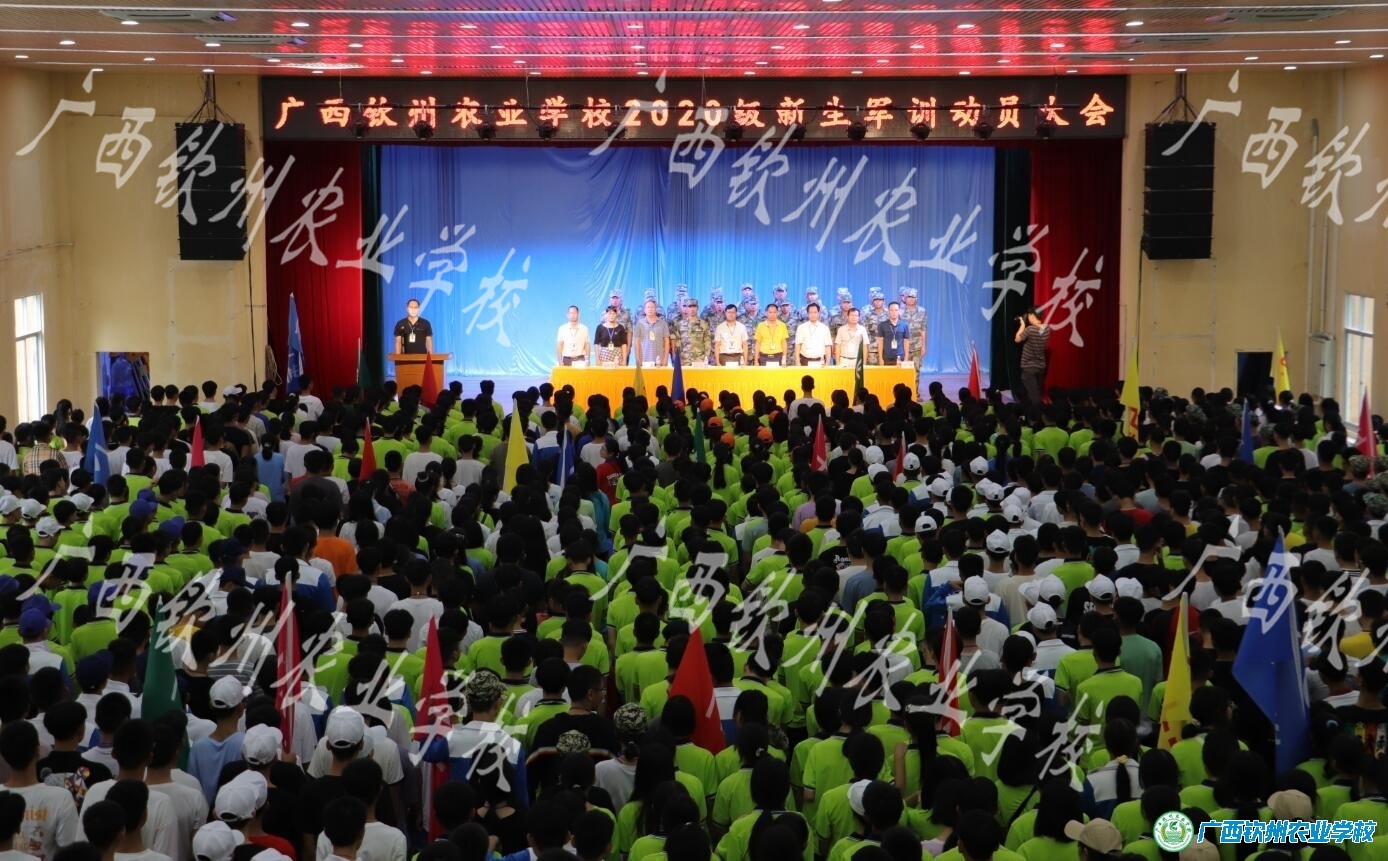 大会在庄严的国歌声中开始。首先,学生科陈志曹副科长解读2020年新生军训实施方案,强调军训纪律。其次是广西钦州市钦南区人民武装部郑合华干事代表教官发言;特色202班翟诗敏同学代表新生军训发言。 最后,陈明强副校长代表学校作军训动员讲话,他向承担此次军训任务的广西钦州市钦南区人民武装部的官兵们表示崇高的敬意和衷心的感谢。他要求这次军训做到“严格要求、文明训练、安全第一”;全体班主任要密切配合好教官,共同把这次军训搞好;向参加军训的全体同学提出几点希望:1. 端正态度,克服困难,力争上好军训第一课;2.遵守纪律,严格训练;3.尊重教官,服从命令,听指挥;4.要认真开展军训队列、内务等评比活动;5.发扬“特别能吃苦、特别能战斗、特别能奉献、特别能团结”的革命精神。
