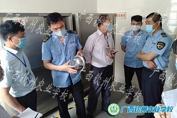 5月14日上午钦州市食品药品稽查支队食品餐饮稽查大队陈本俊副大队长一行3人莅临我校对食堂的食品卫生安全工作进行检查指导,学校覃效敏副校长、总务科班用名科长及食堂管理人员陪同检查。