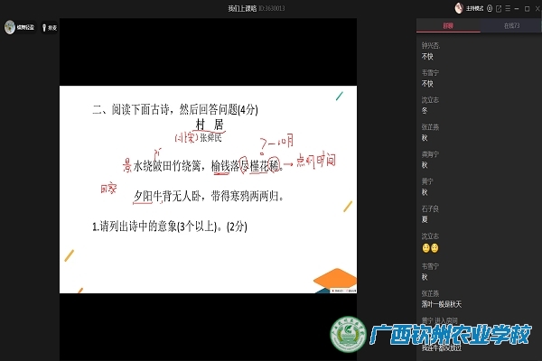 3月份以来,我校教师通过使用QQ群课堂、钉钉群直播、学习通等多方平台开展线上教学活动。累计开课13门,涉及语文、数学、英语等3门公共基础课和园林制图、池塘养鱼、农业昆虫学、园林植物病虫防治技术、淡水捕捞、果树生产技术、幼儿艺术活动、美术、素描、机械CAD等10门专业课,线上上课取得比较好的效果,黎燕老师的美术课有90多人听课,谭桂凤老师上了农业昆虫学等两门课程,陈新萍老师的语文课已上了30多节。教务科按照各教师线上实际授课情况,统计收集意见建议,及时了解教师教学进度与学生学习情况。据了解,我校此次采用线上教学的模式,鼠标代替粉笔,手机电脑代替黑板,上课都是通过手机电脑屏幕。老师和同学表示,这种线上教学的模式的优势就是整合资源和回播,方便学习。