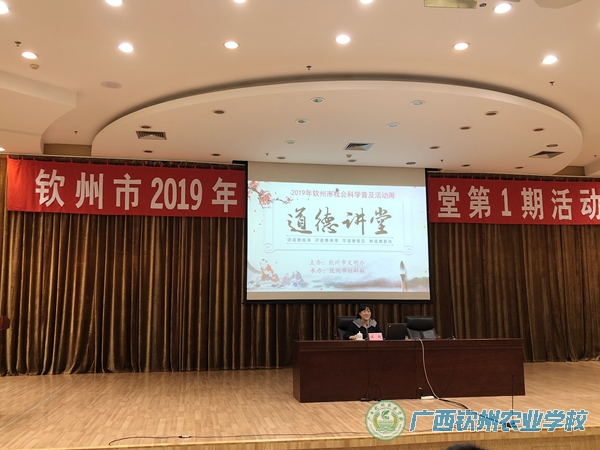 2019年3月28日上午,校团委组织我校50名师生到钦州市行政信息中心C座会议室参加钦州市“道德讲堂”总堂第1期活动。本期讲堂活动由北部湾大学人文学院副教授侯艳主讲,紧紧围绕“传统文化与道德建设”这一主题讲述了传统文化、传统道德与现代道德建设之间的传承和发展,引经据典,结合现实生活诠释了优秀传统文化对于年青人在为人处世方面的积极道德教化。