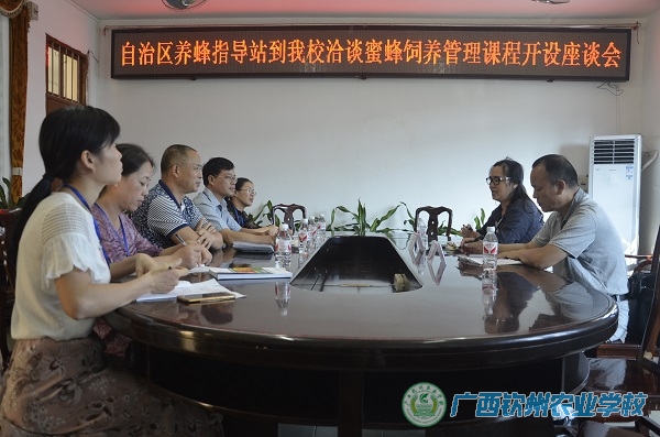 10月8日下午,广西壮族自治区养蜂指导站黄秋莲书记一行2人到我洽谈蜜蜂饲养课程开设情况。伍国樑校长、覃效敏副校长和相关的老师参加了座谈会,植保171、农艺171等6个相关班级的学生参加了养蜂知识讲座。