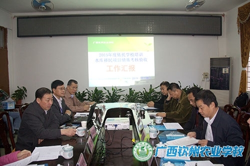 12月29日上午,以自治区水库移民工作管理局副局长谭峰为组长、培训处处长覃革为副组长的广西水库移民培训项目考核验收组到我校对2015年度水库移民培训项目进行考核验收。