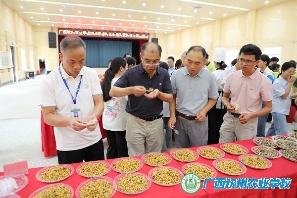 为充分展示优质玉米品种特性,搭建科研成果转化与产销对接平台,推动玉米产业高质量发展,6月13日下午,我校举办春种玉米选育暨鲜食玉米品鉴会。启动仪式在大礼堂举行。广西农业科学院玉米研究所、广西玉米创新团队副首席、研究员王兵伟,玉米研究所优质育种室主任副研究员卢生乔,蔬菜研究所副所长、副研究员程亮;广西农业职业技木大学高级农艺师吴地;广西农业科学院来宾分院副院长、正高级农艺师罗平;钦州市农业农村局农科所所长凌启昌,钦州市种子管理站种子站站长黄凤玲;钦南区农业农村局种子站站长郭仕媛,钦北区农业农村局种子站站长刘宏伟;广西博士园种业有限公司总经理、高级农艺师陈达庆,广西昊生农业发展有限公司总经理、农艺师蓝鹏及我校党委书记伍国樑,党委副书记、校长梁文宇等领导班子成员出席活动。各科室相关人员及现代农业教学部师生共同参与。仪式由教务科副科长李彬彬主持。