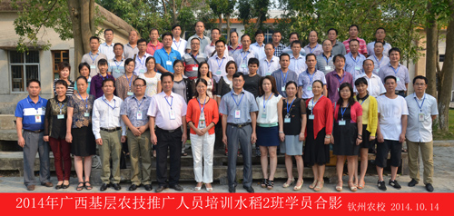 2014年广西基层农技人员培训水稻(2)班经过6天的紧张学习、考察、交流和总结,于10月18日下午在学校会议室举行了结业典礼,圆满完成了所有的培训学习。全体学员在培训过程中有很强的组织纪律性,能主动虚心的向同行学习和交流。学校覃效敏副校长在会上作了总结讲话,充分肯定了培训工作成效,并希望学员们将培训学习到的新型农业知识,充分运用到我市的基层农业生产生活中,不断提升农业科技经济效益,为广西农业技术推广工作做出积极的贡献。