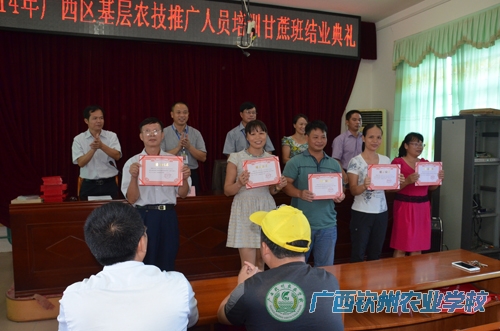 本期甘蔗培训班的学员主要来自于钦南区、钦北区和扶绥县、大化县、忻城县等五县(区)的44位基层农技人员。培训时间共6天,培训的主要内容为农业推广新方法与实践、现代农业推广服务与技巧、甘蔗栽培新技术、甘蔗病虫害综合防治、法律法规、农产品安全质量安全知识、创新能力培养与提高等,培训方式以理论授课和现场学习考察相结合。