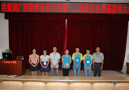 大会由共青团钦州农校第11届委员会团委副书记农晓琼主持,第11届委员会团委书记杨宁远同志作工作总结,代表们进行审议并通过。大会采取无记名投票和差额选举办法,经过现场投票、唱票,最后按得票数高低排序,农晓琼、陈贵才、黄才娟、陈良科、利飞燕5名同志当选为共青团钦州农校委员会第12届委员。