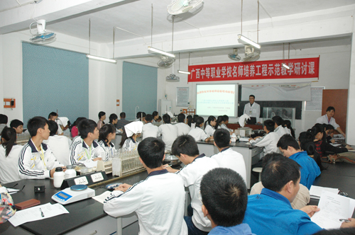 我校领导、相关专业教师及钦州市北部湾职业学校部分骨干教师一起观摩了示范课。