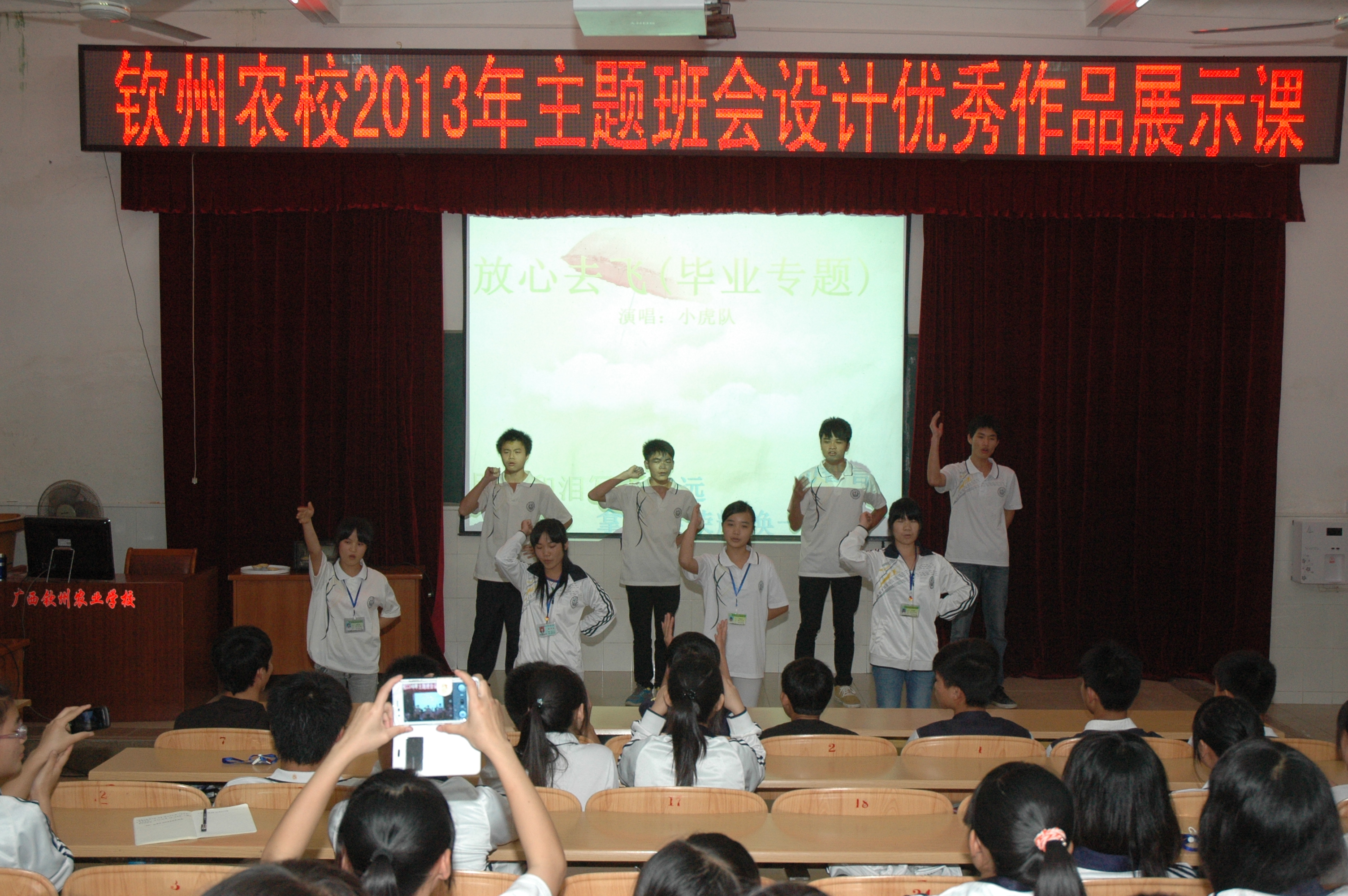 此次班会课的目标是让每个学生拥有自己今后的就业梦想,并为实现这个梦想所制订的规划方案提供充足的信心源泉。为了开好此次班会,加工121班在前期准备中收集了大量的资料,对班会内容精心设计。学生通过观、听、说、演、唱等形式,感触主题思想,激发学生学习热情,使学生懂得理想、目标是自己人生路上勇往前行的动力。