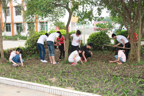 春季是植树的大好时节,为了进一步美化校园,学校加大了绿化植树的力度, 4月18日下午,学校组织学生会开展了春季植树活动。经过一个下午的辛勤劳动,学生会的同学们种下了红背桂、文殊兰、缘阶草、棕竹等树种袋苗上万颗,为校园增添了一片新绿。