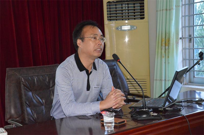 钦州市水果局高级农艺师符兆欢在给学员上课