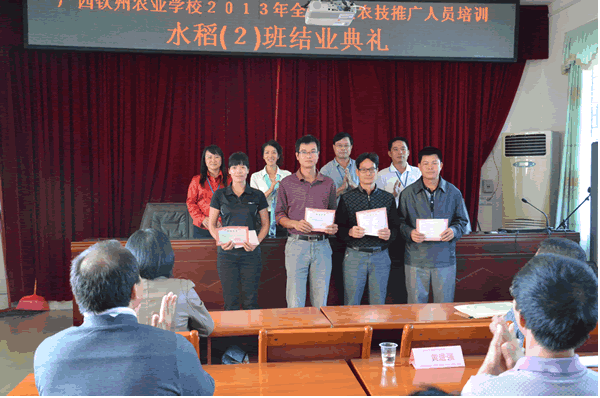 本期培训班于10月21日开班,培训围绕当地推广的水稻新品种、新技术开展,对基层农技推广人员日常工作中急需了解的新技术、急需掌握的新方法进行培训。培训内容主要有现代农业新技术、农业推广新方法、农业信息化服务、农产品质量安全监管知识和考察与交流等5个环节,培训采用现代多媒体与传统教学模式相结合,通过案例分析,学员自讲、师生互动、讨论交流等教学方法。培训期间,组织学员们参观了钦州市农科所水稻品种区试现场、广西农作物新品种展示示范基地、兆和种业有限公司的加工中心和新品种展示现场,学员在参观学习过程中增长了知识,开拓了视野,也增进了友谊,培训效果好。