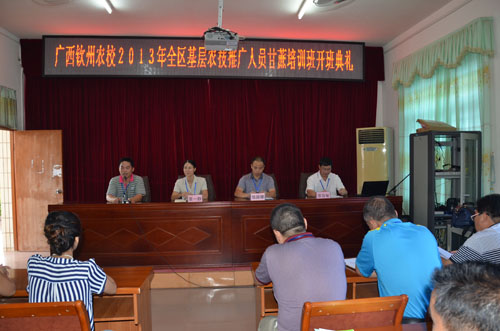 9月9日,我校承办的广西基层农技推广人员甘蔗培训班在学校第二会议室举行简短而隆重的开班典礼。本期甘蔗培训班的学员主要来自于钦南区、钦北区、灵山县、上思县和合浦县共52位基层农技人员。培训时间共6天,培训的主要内容为农业推广新方法与实践、农业信息化服务、农业推广新方法与实践、农产品质量安全监管知识、甘蔗栽培新技术、甘蔗病虫害综合防治等,培训方式以理论学习和现场考察相结合。