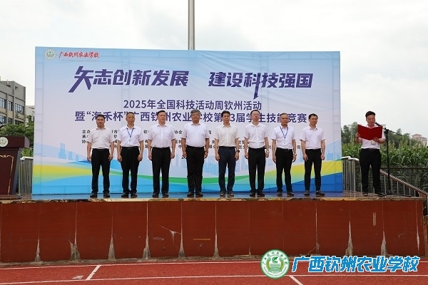 为深入学习贯彻习近平总书记关于科技创新的重要论述,大力弘扬科学家精神,助力形成人才辈出、人尽其才、才尽其用的生动局面,5月20日上午,2025年全国科技活动周钦州活动暨“海禾杯”广西钦州农业学校第23届学生技能竞赛仪式在我校大操场成功启动。钦州市人民政府副市长王文泽、副秘书长潘定喜,钦州市科学技术协会党组书记、主席何立伟,钦州市科学技术局副局长周路、钦北区政协副主席陈宇才、钦州市教育局钦州市校外活动中心主任梁兰军,学校党委书记伍国樑,学校党委副书记、校长梁文宇及合作企业领导出席启动仪式。仪式由李运光副校长主持。相关媒体朋友、市区中学的部分师生代表及学校全体师生近五千人参加活动,共同见证科技与青春碰撞的重要时刻。