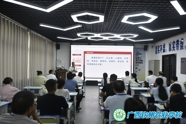会上,招就办、学生科、教务科、总务科等科室负责人依次全面梳理本科室四月份工作情况,同时部署下一阶段重点任务。学校党委书记伍国樑围绕学校领导班子分工,党委委员分工,学校班子和机构设置,收发公文处理以及党委会议议事规则和校长办公会议事规则等事宜作专题培训。最后校长梁文宇对下一阶段工作进行了全面部署。他强调,各科室要聚焦学校发展目标,针对汇报中暴露的问题和不足,迅速制定整改方案,明确责任人和时间节点,确保各项工作高效推进。同时,在后续工作中,要加强部门间协作配合,形成工作合力,为师生营造良好的学习和工作环境。