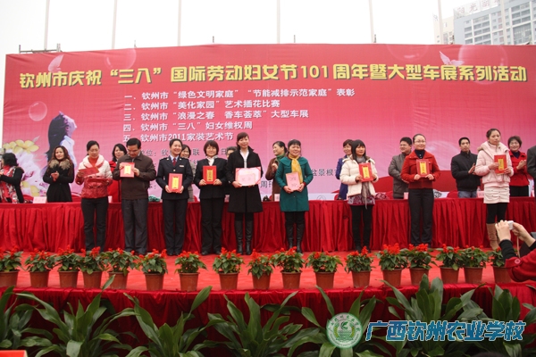 为庆祝纪念“三八”国际劳动妇女节,表彰先进,树立榜样,进一步推动钦州“园林城 卫生城 文明城”的创建,钦州市妇联表彰2010年“文明交通玫瑰行动”和“绿化美化”钦州主题活动先进单位和个人,我校妇委会榜上有名,荣获3项荣誉。