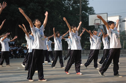 在比赛中,同学们精神饱满,激情昂扬,动作舒展,整齐划一。精彩的表演和激烈的角逐,是对前一段时间训练成果的检验,是班集体凝聚力的一次展示,也是健康向上和青春活力的充分体现。