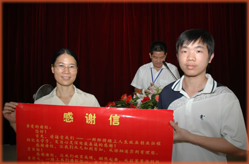 毕业班代表向学校赠送了感谢信