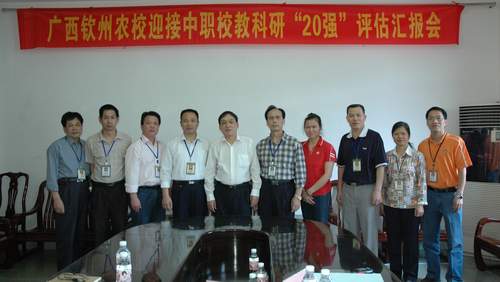 2010年4月12日,由自治区教育厅教科所蒋国平副所长、林少棉主任组成的专家组莅临我校,对我校申报广西中等职业学校教科研“20强”工作进行了评估。