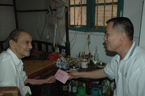 同一天,学校还组织了以工会陆武昌主席为组长的慰问组前往钦南区尖山镇排榜村慰问了10名五保户;在此之前的10月20日,陆主席还驱车前往浦北县张黄镇慰问离休干部赖世纲同志。