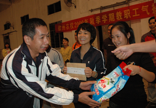 为了丰富职工业余文化生活,锻炼职工体魄,预防H1N1流感,展示职工的精神风貌,增强了教职工的凝聚力, 学校工会在10月初开展了职工气排球比赛。来自14个工会小组的参100多位教职工参加了比赛,学生会体育部选派了30多位同学进行裁判工作。比赛分A、B组,共进行了60多场,历时近1个月,于10月21日晚在学校大礼堂进行了最后一天的比赛。经过紧张激烈的角逐,基础组、计算机组、机械组获得A级冠、亚、季军,工勤组、德育组、电子组获得B组前三名。