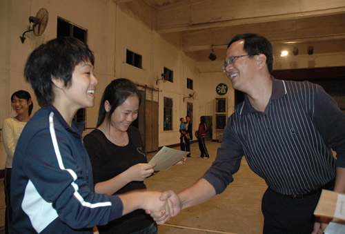 吴炳科副校长为B组冠、亚、季军颁发奖金