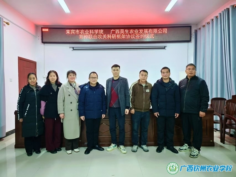 2025年2月25日,广西昊生农业发展有限公司董事、我校农业推广991班优秀校友蓝鹏带领公司高层、技术骨干赴广西来宾市,与广西农业科学院来宾分院正式签署育种联合攻关科研合作协议,标志着来宾分院首个院企协同创新育种项目正式启动,以产学研深度融合为区域种业振兴注入强劲科技动力。