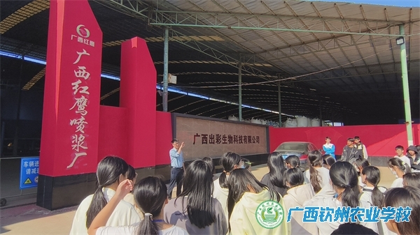 随后,队伍来到武鸣,在梁加亮董事长引领讲解下,参观了广西邦禾红鹰生态农业科技有限公司。通过现场参观学习,学生可以了解到从原料、发酵、成品开发制作的一系列肥料生产流程,感受最新的微生物有机肥、生态有机肥料、土壤调理剂、其他专用肥料的生产技术,更好地理解“生态、绿色、健康”发展的理念。