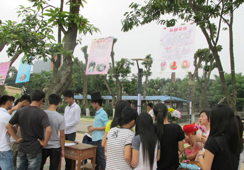 2014年5月15日下午,团委组织兴趣爱好类学生社团在校园内举行招募活动,此次活动共有吉它社、轮滑社、面点社、丝网花社、羽毛球社、音乐社、书法社、织绣社等11个学生社团到场招募。活动现场人头攒动,同学们积极咨询、踊跃报名,现场气氛热烈。下一步各社将对报名参加社团的同学进行面试和审核,希望新一批社员的加入,能为我校的社团文化注入新的活力!