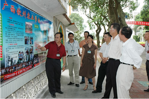 2007年7月19日上午,以自治区人民政府督学、自治区人民政府教育督导团办公室副主任胡治高为组长的自治区教育督导团一行三人在钦州市教育局有关领导的陪同下到我校进行督导检查工作。 此次督查的内容是中等职业学校招生宣传情况、招生成本是否执行自治区的有关规定以及招生中是否存在地方保护行为等。胡治高一行三人首先视察我校园环境及校园建设,对我校所取得的成绩表示赞赏。随后听取校长刘波同志所作的工作汇报。刘校长说,我校的招生宣传做得早,方案具体可行,并且认真贯彻落实自治区教育厅的有关文件精神,坚决不搞有偿招生,严格控制招生成本,取得了一定的成绩,并实事求是地分析当前招生中存在的困难和问题。督导团对我校的做法予以肯定,并表示对反映出来的问题进行认真研究和反馈,以促进我区中职教育的良性发展。