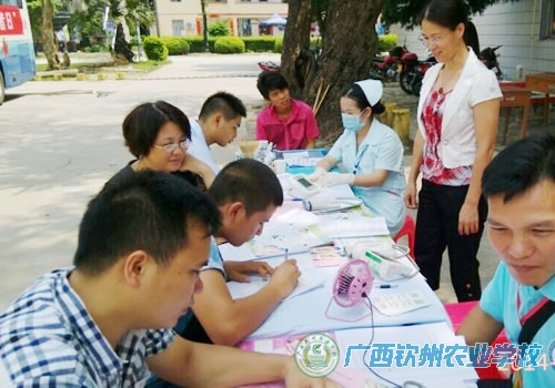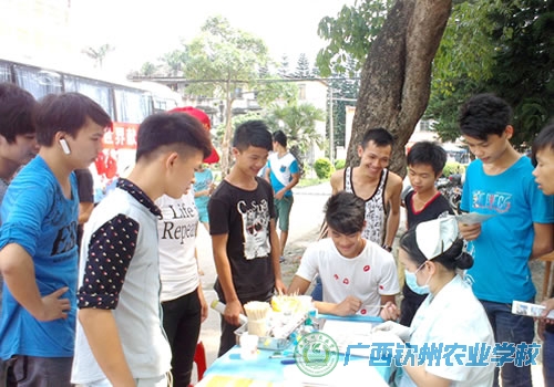 2014年6月14日是第十一个世界献血者日,为宣传无偿献血知识,鼓励更多健康适龄的青年人加入无偿献血行列,当天上午9点钦州市中心血站到我校学生宿舍区开展无偿献血知识咨询及流动采血车采血活动,参与无偿献血的师生以实际行动为公益事业献出一份爱心。