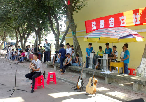2014年6月18日下午4:30,由吉它社举办的专场音乐会在学校南一球场举行。活动一开始就吸引了同学们的注意,当吉它弹起,歌声唱起时,更是让过往的同学们禁不住驻足观看。《启程》、《倔强》、《温柔》……吉它社的社员们轮流上场,各展才艺,一首首动人的歌曲赢得了阵阵掌声。活动的成功举办不仅展示了吉它社的社团风采,增强了社员的自信心,而且还让更多同学感受到了吉它的魅力!吉它社石宗启社长表示:“要将吉他社继续办下去,继续为音乐爱好者提供学习与交流的平台,为学校的文化生活出一份力。”