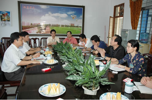 9月26日上午,自治区教育厅李俊才调研员、农业厅科教处李有礼副处长、农业广播学校覃国森校长一行到我校进行调研。在听取刘波校长的工作汇报后,李调研员一行实地考察了学校的主要教学场所和设施。调研组对我校近年来取得的办学成绩给予充分肯定,并对我校今后的工作作了重要指示。