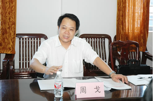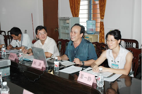 刘波校长向复评组汇报我校创建绿色学校的工作情况