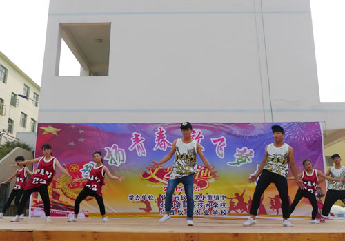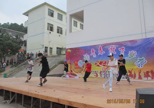 2015年5月5日下午,我校覃一静副校长带领招生与就业指导办公室、团委、学生社团成员师生一行20多人,到钦北区小董镇中参加“激扬青春 放飞梦想”文艺汇演。舞蹈队、音乐社、鬼舞社的同学们代表学校参与了节目的演出,精采的节目赢得场下师生们的连连喝彩和热烈的掌声。