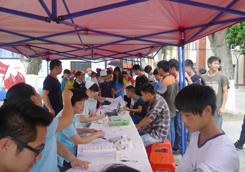 2015年6月3日下午,我校团委与钦州市中心血站联合策划组织的无偿献血活动在办公楼前如火如荼地举行。下课后的师生们热情高涨,纷纷前来参与献血咨询,当天共有29名符合条件的师生参与了献血,以实际行动奉献爱心,传递温暖。