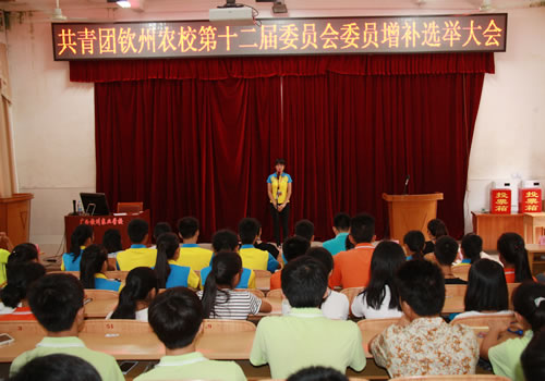 为及时补充2013级在职学生委员离校实习后团委岗位的空缺,2015年6月12日下午,校团委在电化教室举行共青团钦州农校第12届委员会委员增补选举大会,覃一静副校长、团委农晓琼书记、班主任代表、正式代表、列席代表共100多人参加了大会。