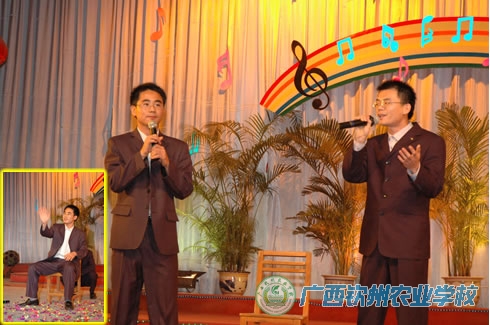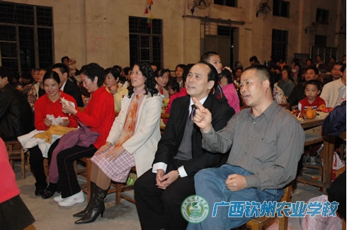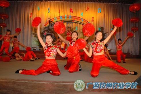 晚会现场 刘波校长致新年祝词 综合071班同学表演舞蹈《好日子》 种植组表演健身操《样样红》 学校领导与教职工一起观看师生们表演 机电组表演相声《双簧》 离退休组表演合唱《中国梦》