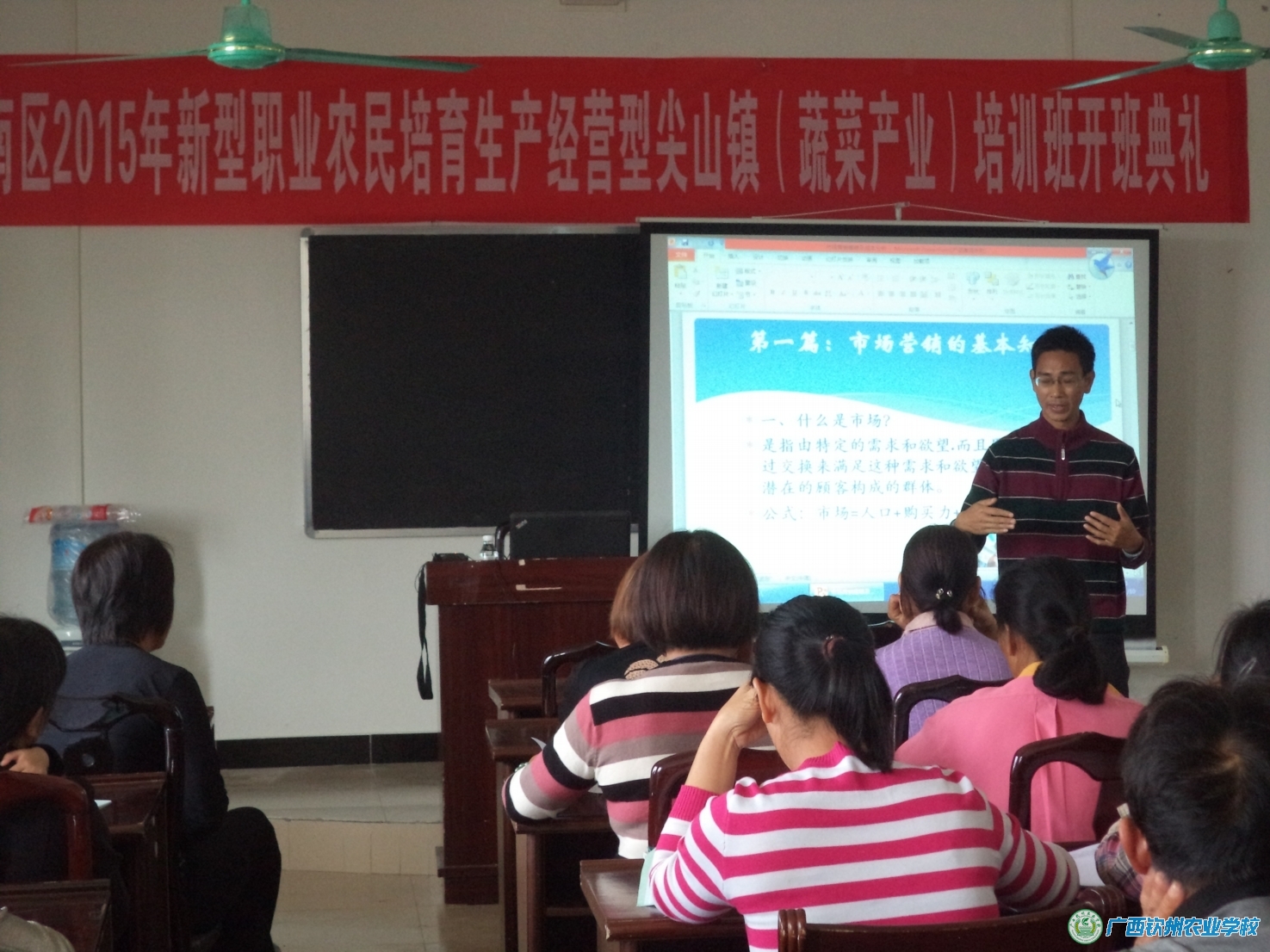 在钦南区农业局的精心挑选和组织下,尖山镇的46名种养大户和专业合作社骨干集中到鑫农农业生产观光生态示范园的培训教室进行培训,我校组织我校理论知识深厚、实践经验丰富的高级讲师授课,并聘请了钦南区农业局的专家在新型职业农民培训项目方面进行了授课。期间,还组织学员到东兴市广源农业开发有限公司实地考察,学习先进的栽培技术。最后,组织学员进行考核。