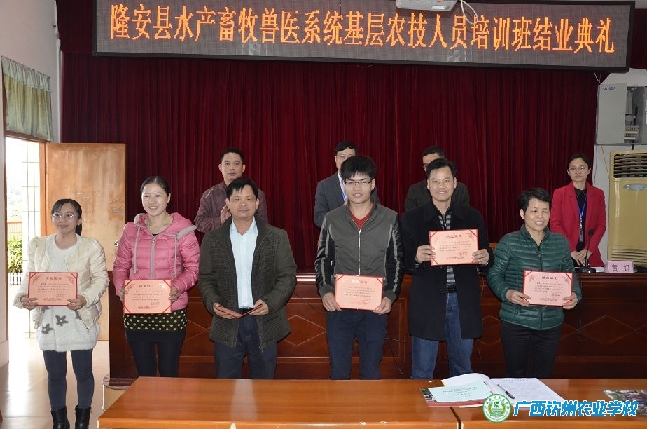 3月4日,我校圆满完成隆安县2016年第一期基层农技人员培训水产畜牧班培训工作。即日下午在学校第二会议室举行了简短而隆重的结业典礼,学校领导覃效敏副校长出席结业典礼。