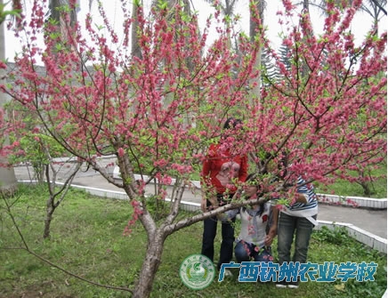 学校主校道西边不到100米的桃花园,在钦州城区也是个难得一见的桃花园!这里有桃花大概300多株,水泥路从桃花园穿行而过,将桃花园分成南北两部分,正好方便人们沿路观赏。虽算不上繁花似锦,却也是别有情趣。盛开的桃花引来彩蝶翩翩飞舞、引来蜜蜂翁翁采蜜,更引来了不少学生、教师及其家属纷纷前来赏花、休闲和拍照,留住春天是人们的共同愿望!置身于此,你顿感自己鸿运当头。