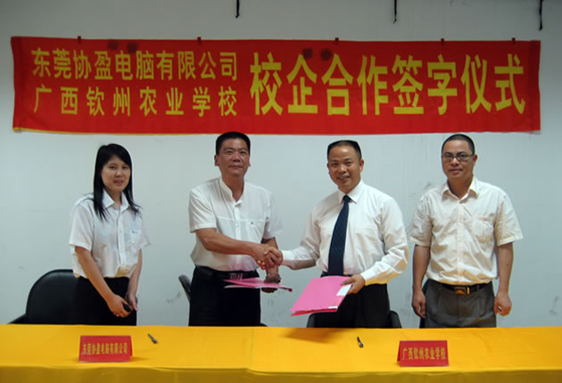 近日,我校分别与广西田园公司、东芝家用电器有限公司、东莞协盈电子有限公司举行了校企合作办学签约仪式,并为广西田园公司培训基地揭牌。